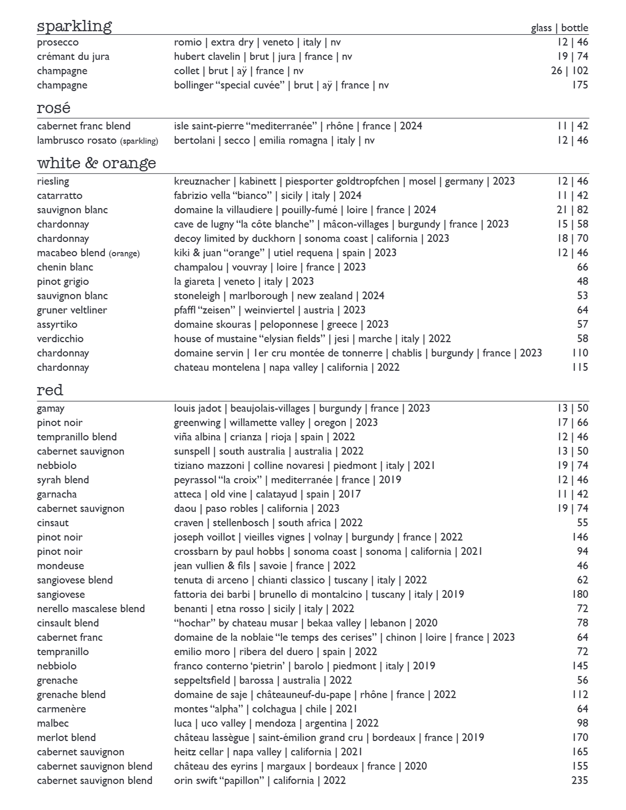 A 15% lbd tax is included in the price of all liquor and wine items.